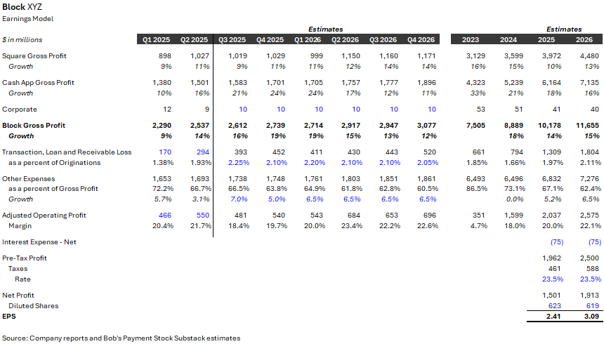 The good news for Block bulls is that valuation starts to look decent based on 2026 numbers, even when fully burdened for stock-based compensation. Based on my $3.09 estimate, shares trade at less than 24x, a reasonable entry point if you believe Block can sustain balanced gross profit growth in the low double-digits. I continue to believe there are risks to rapidly expanding Block’s lending and key questions remain about how these loans will perform, or if they will even be originated, during recessionary periods.