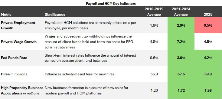 In the years following the pandemic, the payroll and HCM industry benefitted from an almost perfect environment: a strong recovery in employment, rapidly rising wages and short-term interest rates, significant labor market turnover, robust new business formation, and exceptional demand for HCM solutions by small businesses looking to attract talented employees in a highly competitive labor market, all backed by extraordinary government support, including the employee retention tax credit, or ERTC, which netted small businesses hundreds of billions of dollars through 2025.